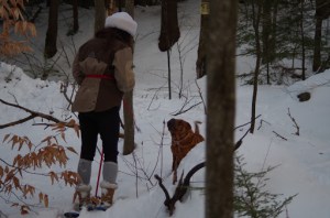 This past week, my sister and I are working through her “bucket list” before she leaves New England for sunny Arizona. We snow-shoed Saturday and yesterday through the woods around my home looking for “deer sheds”. Apparently when the deep cold hits the blood ceases to reach the antlers of our local bucks and the antlers fall off. We didn’t find any but that didn’t diminish the fun of trekking with my dog Alice.