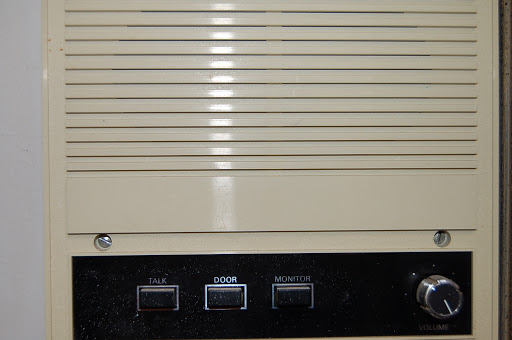 The wall mounted box below appeared in every room, including the bathrooms and gave you four options: Talk, Door, Monitor and volume control. I love to think of whoever put this system in place pushing the Talk button and shouting through the house “Bring a new roll of toilet paper, stat!”