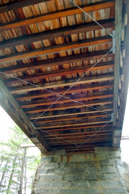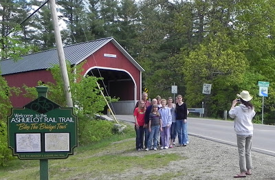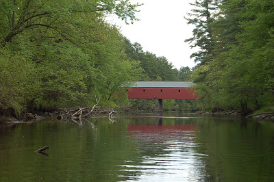 When I reached the bridge there as a small crowd of folks in the parking lot. I climbed unceremoniously up the slippery banking, dragging my kayak. Two gentlemen and a boy came to watch. It was obvious this was a grandfather, father and son. In the background stood the grandmother, mother, and four daughters. The dad and grandfather smiled and asked if they could help me. From there the conversation just took off. The family had flown to New York for a graduation ceremony and were touring as much of New England as they could squeeze in. They had walked the Freedom Trail in Boston and visited Plymouth Plantation. The Covered Bridge tour was their favorite day so far.