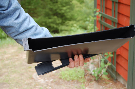 Then the hive bodies full of frames emerged. The kit I bought holds ten deep body frames. Traditionally the frames, (where all the comb is built) are wood with wire or plastic foundations to build upon. My kit included one-piece waxed plastic frames and foundations. I’m looking for a quick start here, it’s already June and we are deep into the production season. If my bees are to survive the winter they will need plenty of stores to snack on.