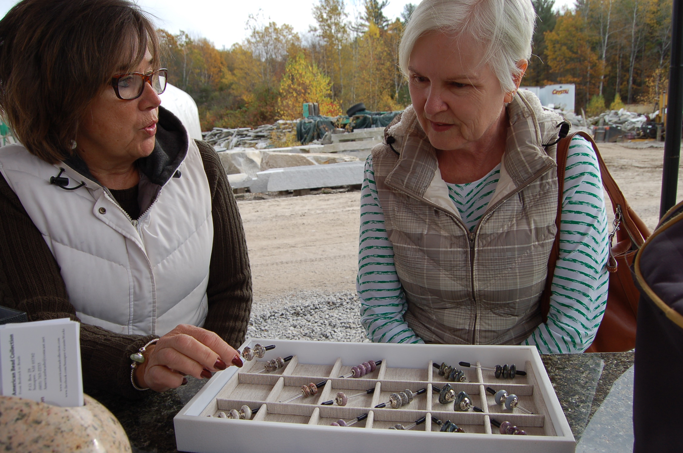 She has a personal passion to collect an indigenous stone bead from every state she has called home.  A trip to Sunapee Granite Works not only allowed us to wander the back roads, still bathed in glorious color, but to explore the art of stone. Bill and Pam Stocker met us at the stone cutting yard to discuss creating a custom bead from a rare Texas rock. From massive blocks, they cut and polish the stone, producing towering monuments and tiny dazzling gems.