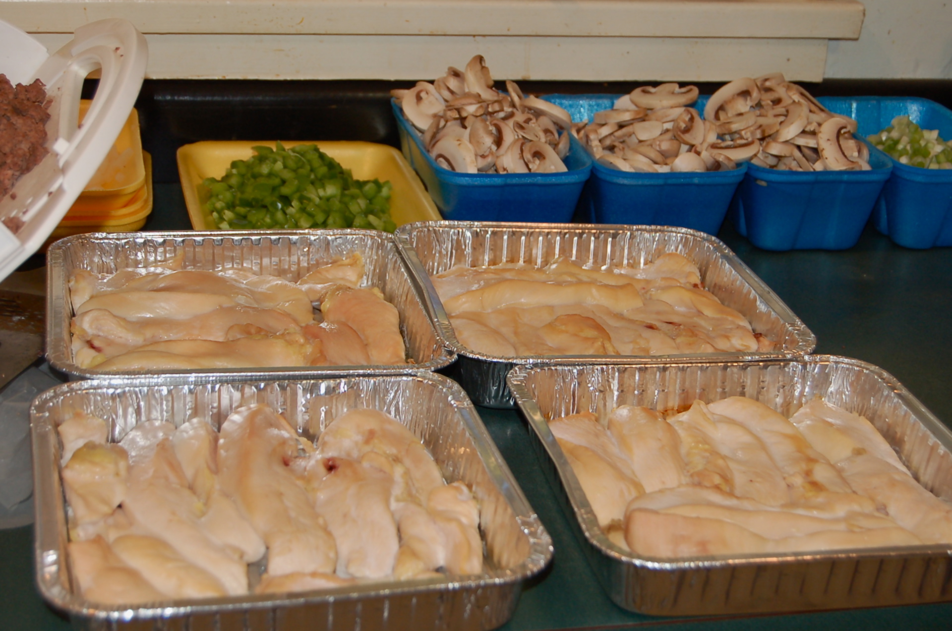 A staggering amount of meat goes into these meals, and I don’t mean that in a bad way. The sheer volume of finished food would make a homeless shelter happy for a month. Thirty-five pounds of 93% ground beef, eight pounds of ground pork, four pounds of ground veal, twenty-five pieces of boneless chicken breast, eighteen pork chops, eight steaks and twelve pounds of steak tips.