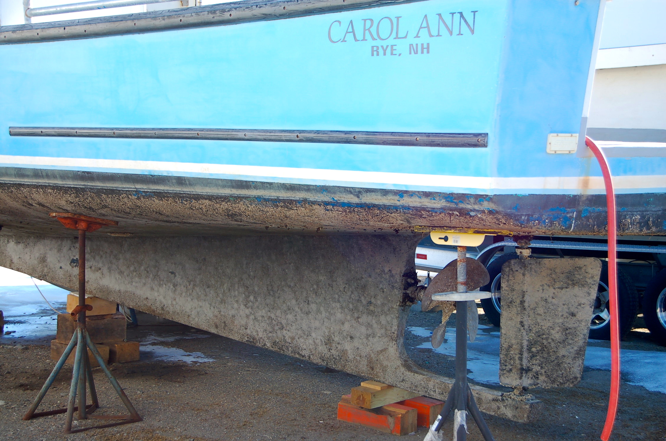 This particular business-of-Petey sat in the entrance to the harbor. Several fishing boats teetered atop their stands, in various states of repair. These are not the sleek summer yachts. With names like Carol Ann, these are working vessels.