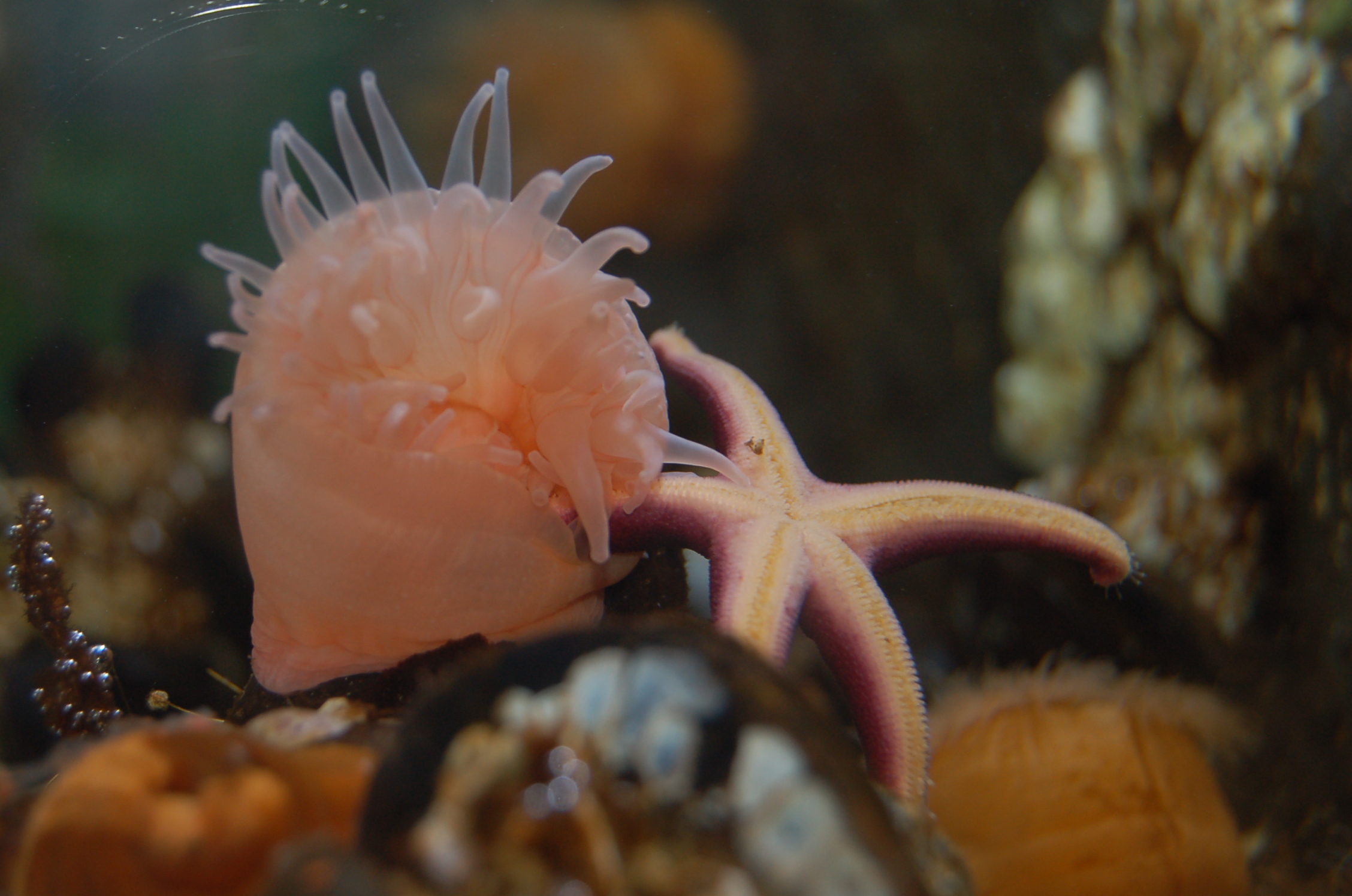 I just happened to catch an incredible show in one tank when this anemone reached out and grabbed a starfish. Eventually, it let go and the starfish scuttled away. No harm seemed to have been done, but I wondered all afternoon what had happened. What do you have to do to piss off an anemone?