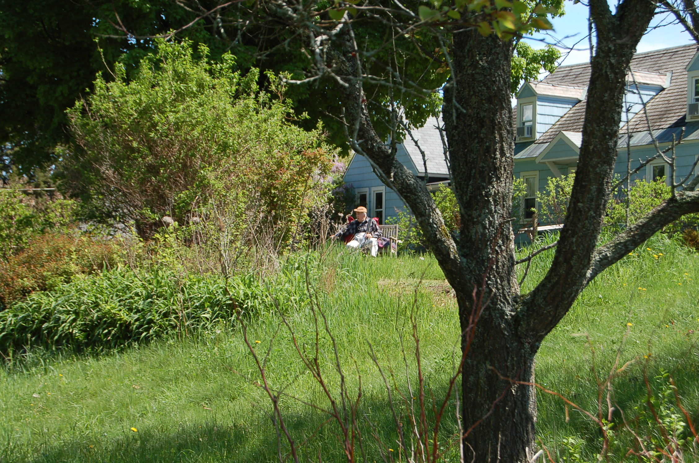 The elderly farmer waited eagerly for our report, looking out over his fields and gardens while his new bees settled in.