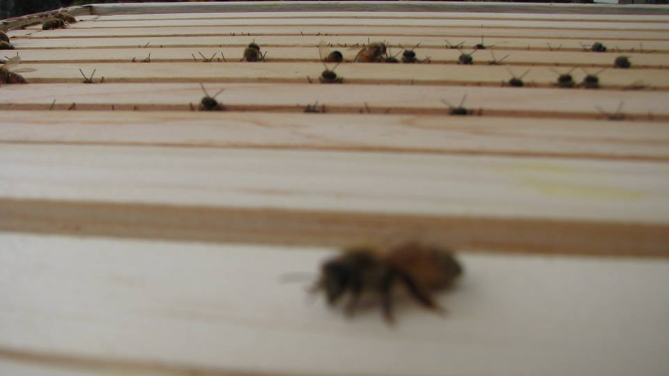 My friend’s hives appeared to have suffered similar episodes of swarming and rebuilding with a new queen. They were healthy but not as robust as one would want to see by this time of year. I wish Jodi had been there looking over my shoulder to guide and explain. I felt knowledgable enough to guide him through a preliminary inspection until the stings drove me from the hive house. Best not to hang around once the warning has gone up.