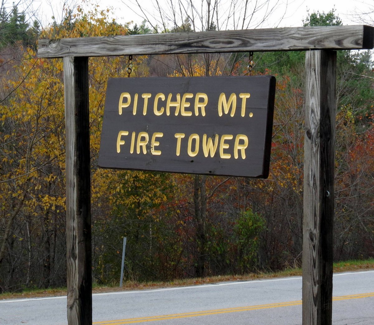 I’ve been determined this year to show you what our fall foliage looks like from up above the treetops. My first try on Hewe’s Hill in Swanzey wasn’t entirely successful because of the limited viewing range and the bright sunshine that day, so last week I decided to try Pitcher Mountain in Stoddard. There are 360 degree views from the top of this mountain, so I reasoned that it would be possible to take photos without the sun shining directly at the camera.