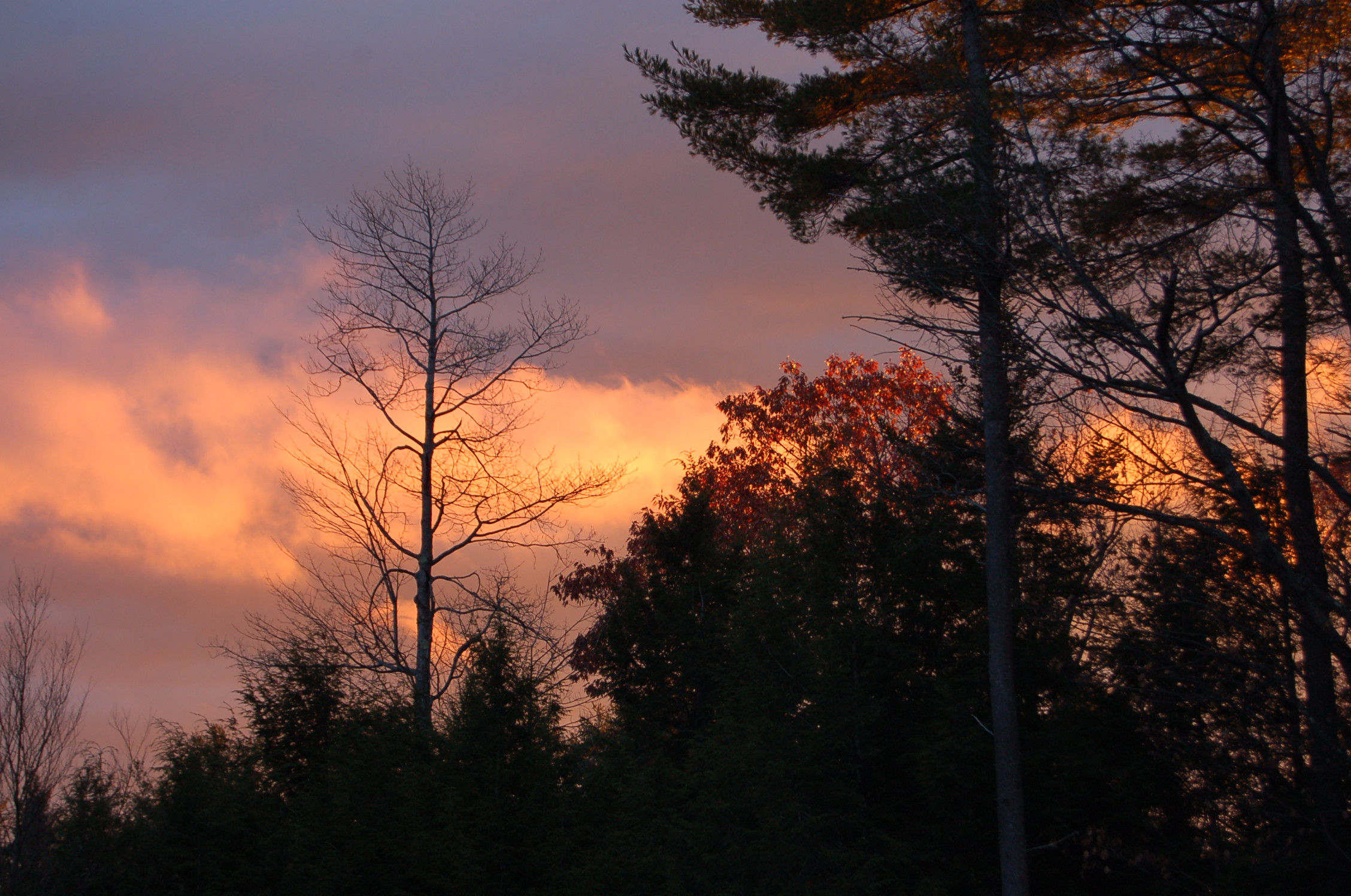 Remnants of our first snow cling in the tall pines and the dark crevices of the landscape. The daylight arrives late, weak and gray. It departs early with fleeting bursts of energy was it sets the clouds afire before slipping us into dusk and shadow.
