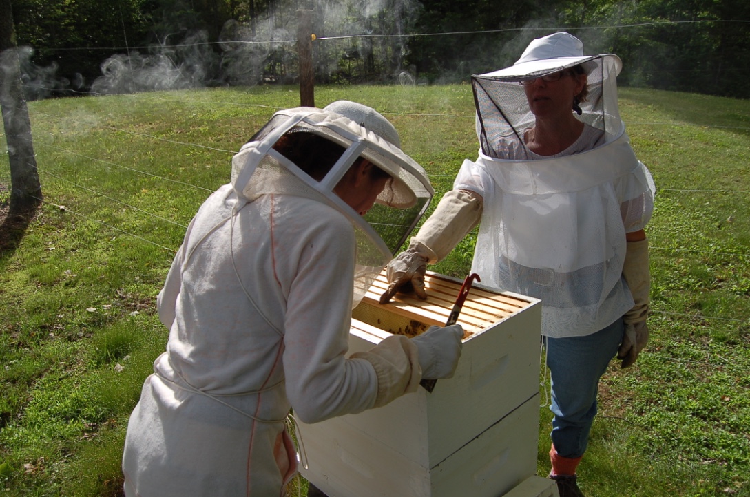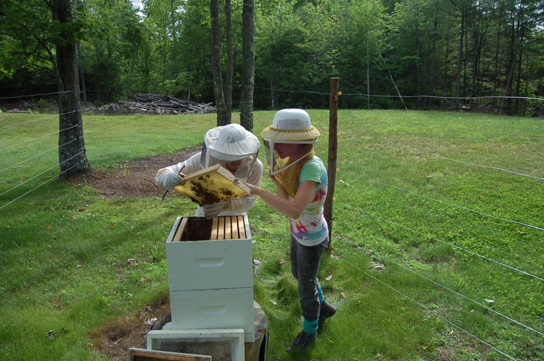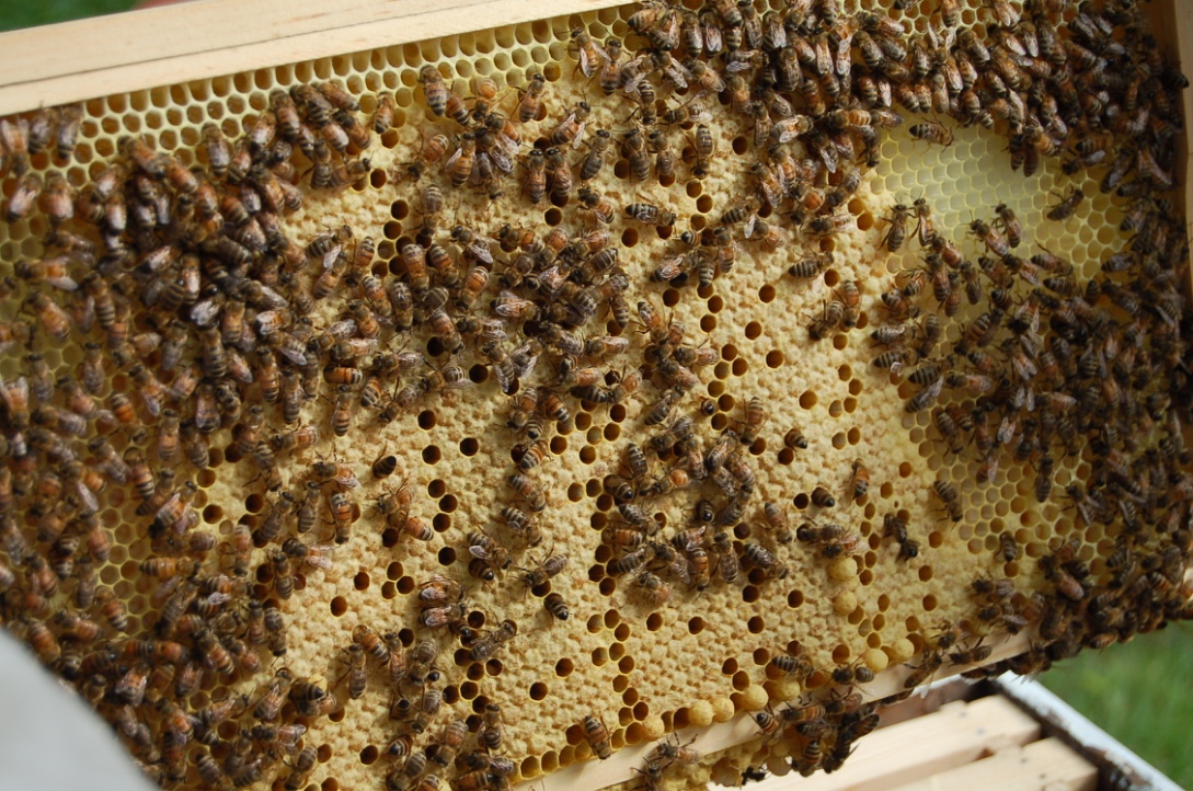 I’m sure, just as the bees settle into their hive (Bee-autiful combs by the way) and follow the lead of the queen, the dogs will do the same. PS – Did you try calming the pups with a little smoke from the can before letting them out? It works so well with the bees!
