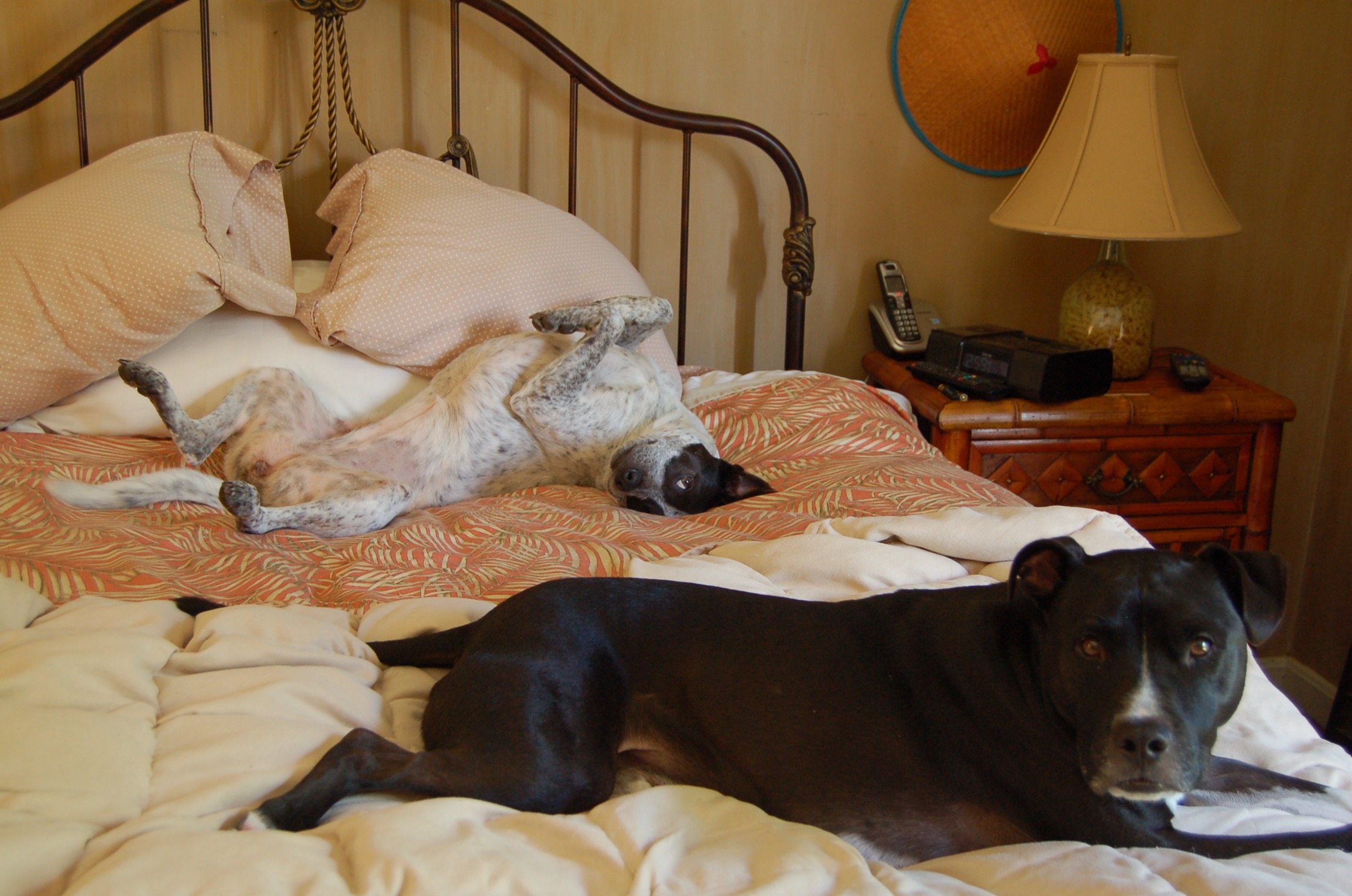 Ah, my kindred spirit….. Dopplegangers for sure. While I have one human and two large beasties that share my “nest”, the one who takes up the most room in the king size bed is indeed four-legged… insists on lying perpendicular at the bottom of the bed, on his back, hind legs stretched out behind, front legs stretched out in the opposite direction, covers the entire bed side to side. Being a bit of a snuggler, he needs to touch you while sleeping, so, if I move away, he follows…Often times, I hang off the corner of the bed while the rest sprawl in blissful sleep… In my next life, I want to come back as one of MY dogs…or maybe one of yours!