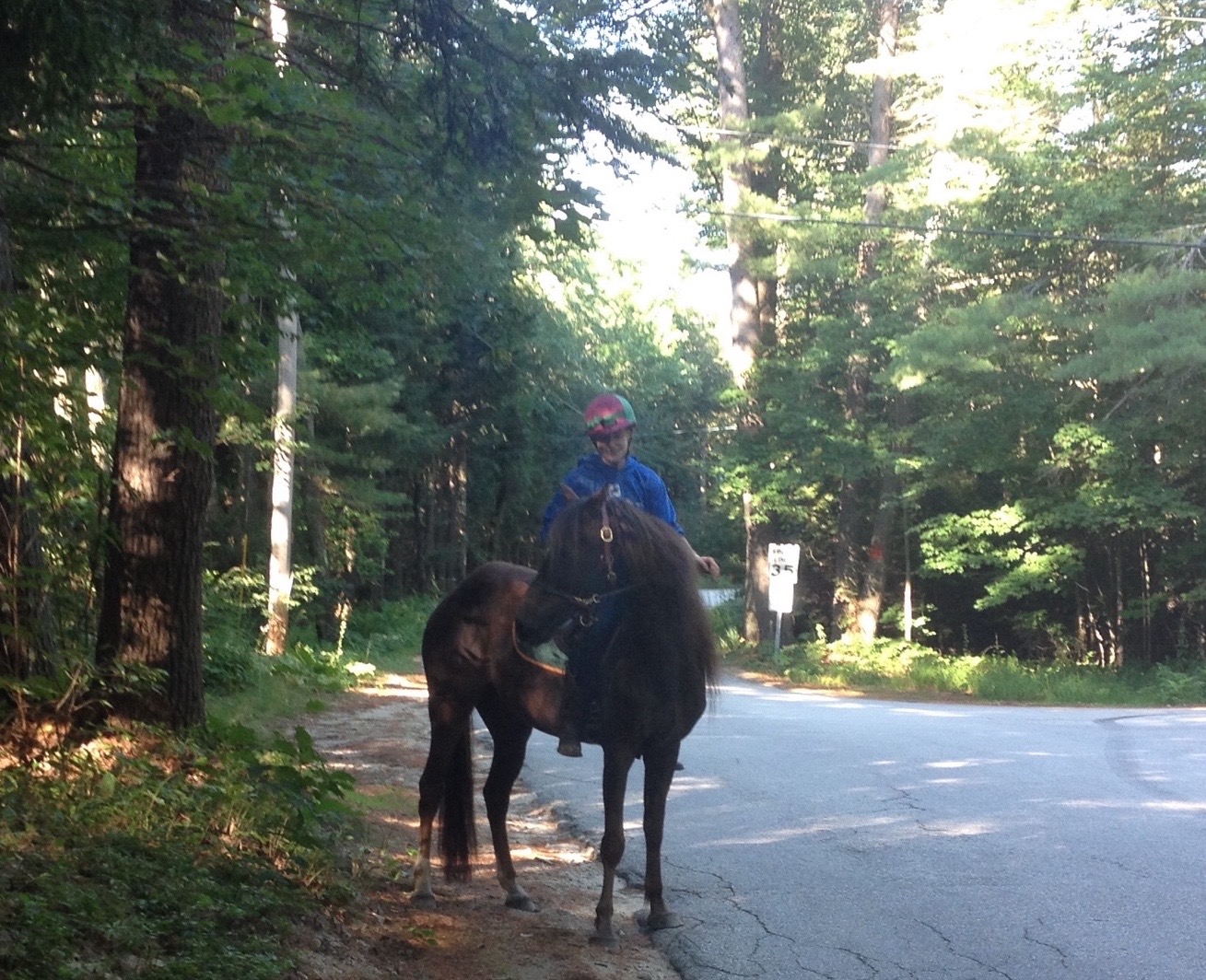 FullSizeRenderSince then, I am overjoyed when Alice sounds the alarm and I look out to see the pair cresting the hill in the driveway. He is intent on a rest from total emotional and physical overload and she is grinning from each corner of her only armor, her helmet.