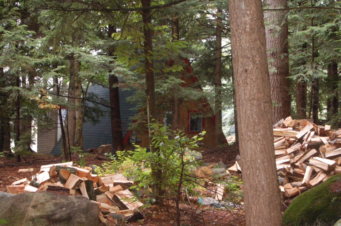 The houses of our neighbors run the gamut from lovely refurbished cottages with green, well-kept lawns and sandy beach fronts to ancient trailers parked before the turn of the century, sprouting additions that were never quite finished. A garden of saucy zinnias brightens one such home, until I look closer and realize they are plastic. Doors are thrown open to the late summer heat yet stone fireplaces smoke in backyards. New firewood sits in various stages of stacking and seasoning. Those who are savoring the last fishing and boating days are also mindful of the season to come.