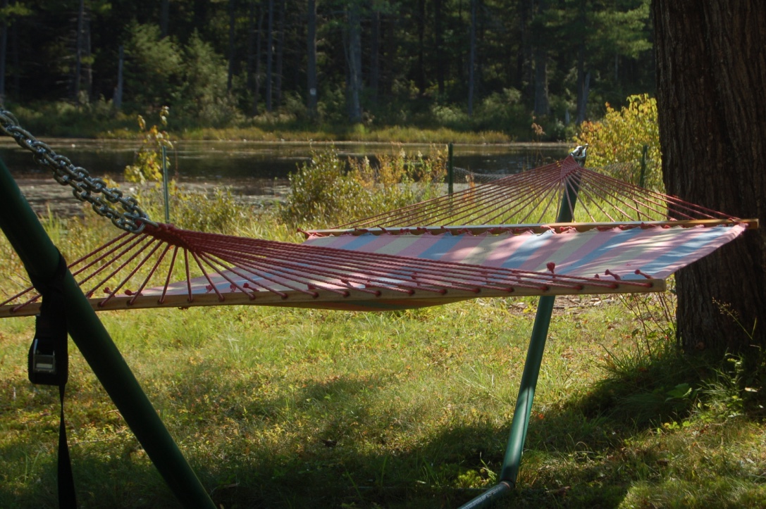 Moments lost in thought as the hammock gently sways. The breeze lifts the leaves overhead as I gaze without seeing. I am in Jamaica, the hammock house on the cliffs at Lighthouse Park. Those hammocks were cocoon-like, rough marine ropes that required a towel lining to ward off the prickly fibers. This hammock is smooth cotton stretched wide on either end offering a taunt bed.