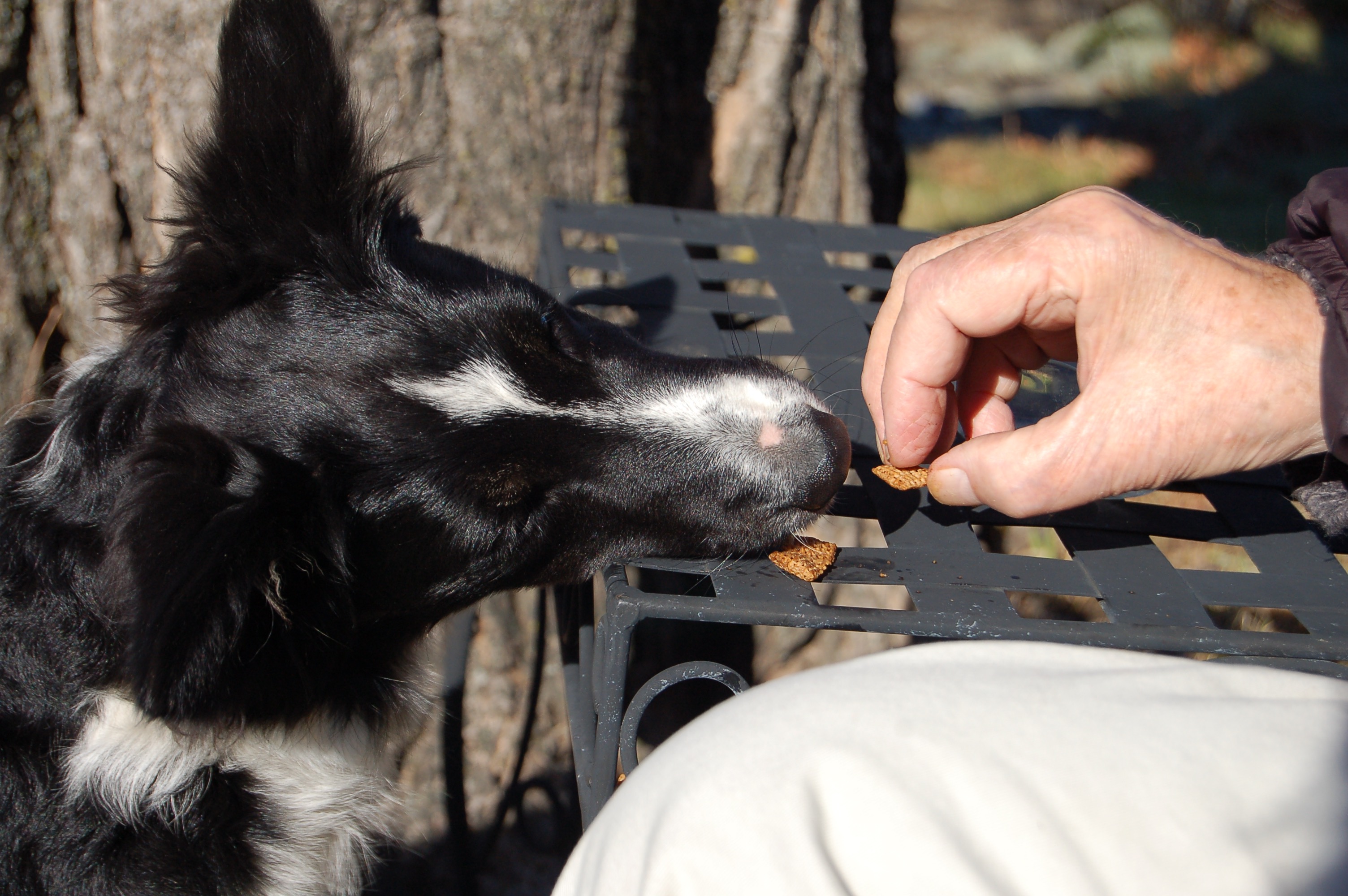 She placed the ball gently in his lap and stood back expectantly. He tossed it, she caught it and replaced it between his legs. This went on until his attention drifted. She sat patiently at his feet. After a short nap, he roused and reached for some of the Chex Mix. The dog nudged at the ball and stood back. He placed a few pieces of Chex on the edge of the table. She looked at him for approval then gently took the offering. I watched their interactions in silence,