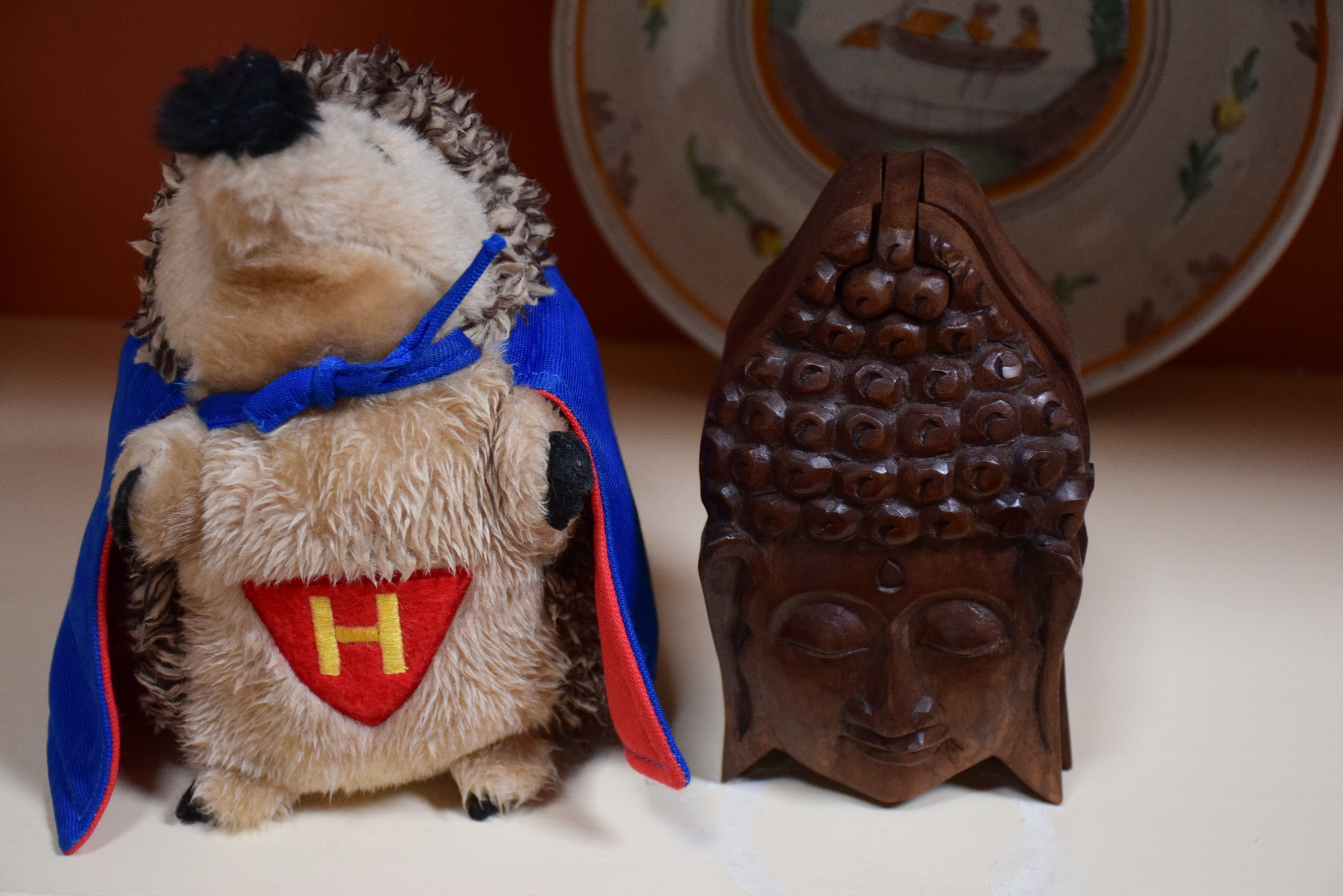 When life becomes overwhelming, we each turn to our talisman. Her’s suffer the wrath of her teeth and to date we have replaced them many times over. I’m currently in the market for a Buddha Hedgehog…