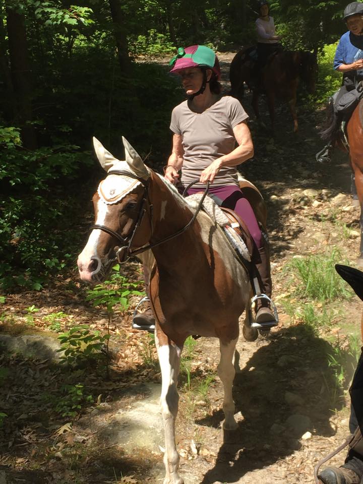 As we traversed the trails toward the Big Field, eight of us came around a corner and watched a bouncing, round baby black bear scamper across the trail. Heather quietly stopped and instructed the riders to turn and quietly walk back the way we had just come. Where there is a baby, a Momma is sure to follow and no one wanted to upset her.