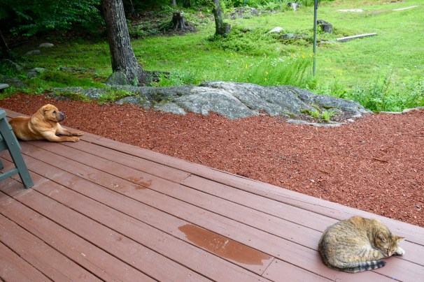 It was good to come home. I grilled swordfish and made a green salad for my dinner. Alice was equally pleased with her usual cup of kibble. A Flicker sat in the tree above the deck and boisterously called his mate. Alice reclaimed her bones and toys. I danced with abandon to a Trace Bundy guitar solo and felt lucky to be staycationing in such a wonderful place.